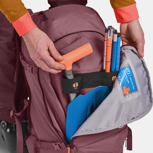 Clever details make this ski touring backpack a practical, versatile companion in the mountains. Your shovel and probe can be comfortably stowed in a separate, emergency equipment compartment where they’ll still be easily accessible. The spacious main compartment is accessible from the top and back, which means all backpack contents will be easily accessible, not least thanks to the bright interior colors. Load control cords, in combination with the foam back and ergonomic straps, allow for balanced weight distribution even over lengthy periods. Even so, a tailored fit means this ski touring backpack will move with you.
