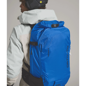 In order to optimally adjust the backpack while on the go, it can be quickly compressed using the integrated side straps and folded into a flat-fitting second skin on the back. When it comes to rappelling into steep gullies or short walking passages, this freeriding backpack has all the necessary attachment options for skis, an ice axe or rope, not to mention the tried-and-tested helmet net, emergency card and hydration system compatibility. All the features are well stowed away on the outside to prevent them catching, even when in difficult terrain.