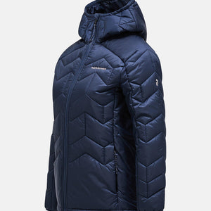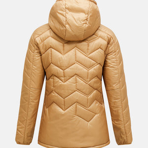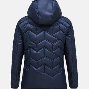 Adjustable drawcord at bottom hem, Body - 133 gr/m2, Chinguard, Elastic binding at cuffs, Fixed Hood, Full front with reversed YKK coil zipper, Hanger loop at back, Hood - 60 gr/m2, Lightweight recycled polyester ripstop, wind and water resistant, Made without intentionally added PFAS, One-way (width) adjustable hood, P-logo embroidery at sleeve, Peak Performance embroidery at chest, Quilted in P-logo pattern, Recycled fibers, Recycled insulation, Repair patch included, Synthetic sheet insulation., Zippered hand pockets