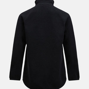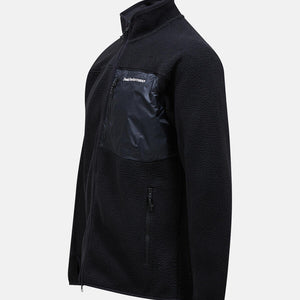 Elastic binding along collar, center front zipper, bottom hem and cuffs, Elastic cuff with thumbhole, Full front with 2-way YKK Vislon® zipper, Made without intentionally added PFAS, Narrow flatlock covering seams, Peak Performance embroidery at chest, Soft pile with jersey back, Stand up collar, Woven outside pocket, Zippered chest pocket, Zippered hand pockets