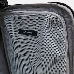 Carrying handles, Compression straps inside bag, Inline rubber wheels, Inner mesh stash pockets, Lockable zipper on main compartment, Made without intentionally added PFAS, P-logo print on side, Peak Performance print at top lid