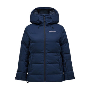 Adjustable drawcord at bottom hem, Adjustable sleeve hem with velcro straps, Duck down, 700 fill power, 90/10 down/feather, Elastic wrist gaiters, Fixed Hood, Fixed snow skirt with snap-in ski pant system, Full front with reversed YKK coil zipper, Goggle wiper, Hanger loop inside neck, Inner mesh stash pocket, Made without intentionally added PFAS, One-way (height) adjustable hood, One-way (width) adjustable hood, P-logo embroidery at sleeve, Peak Performance embroidery at chest, RECCO® Rescue System reflector, Responsible down standard, Soft fleece lined chin protection, Sterilization Permit no. PA 9900(CN), Zippered hand pockets under flap, Zippered inner pocket, Zippered ski pass pocket