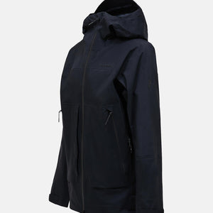 Adjustable drawcord at bottom hem, Adjustable sleeve hem with velcro straps, Articulated sleeves, Exposed zippers are YKK AquaGuard®, Fixed Hood, Full front, 2-way YKK AquaGuard® zipper, Fully seam sealed, GORE-TEX 3L C-KNIT™, Hanger loop inside neck, Hidden RFID pass pocket, Inner mesh pocket accessible through ventilation, Laminated brim, Leg pocket with flap, Made without intentionally added PFAS, P-logo rubber badge at sleeve, Packable into hood, Peak Performance embroidery at chest, Plastic wire at hood brim, RECCO® Rescue System reflector, RECCO® Technology, Ski helmet compatible hood, Soft fleece lined chin protection, Two-way (height and width) adjustable hood, Zippered bellow waist pocket, Zippered front facing ventilations, Zippered inner pocket