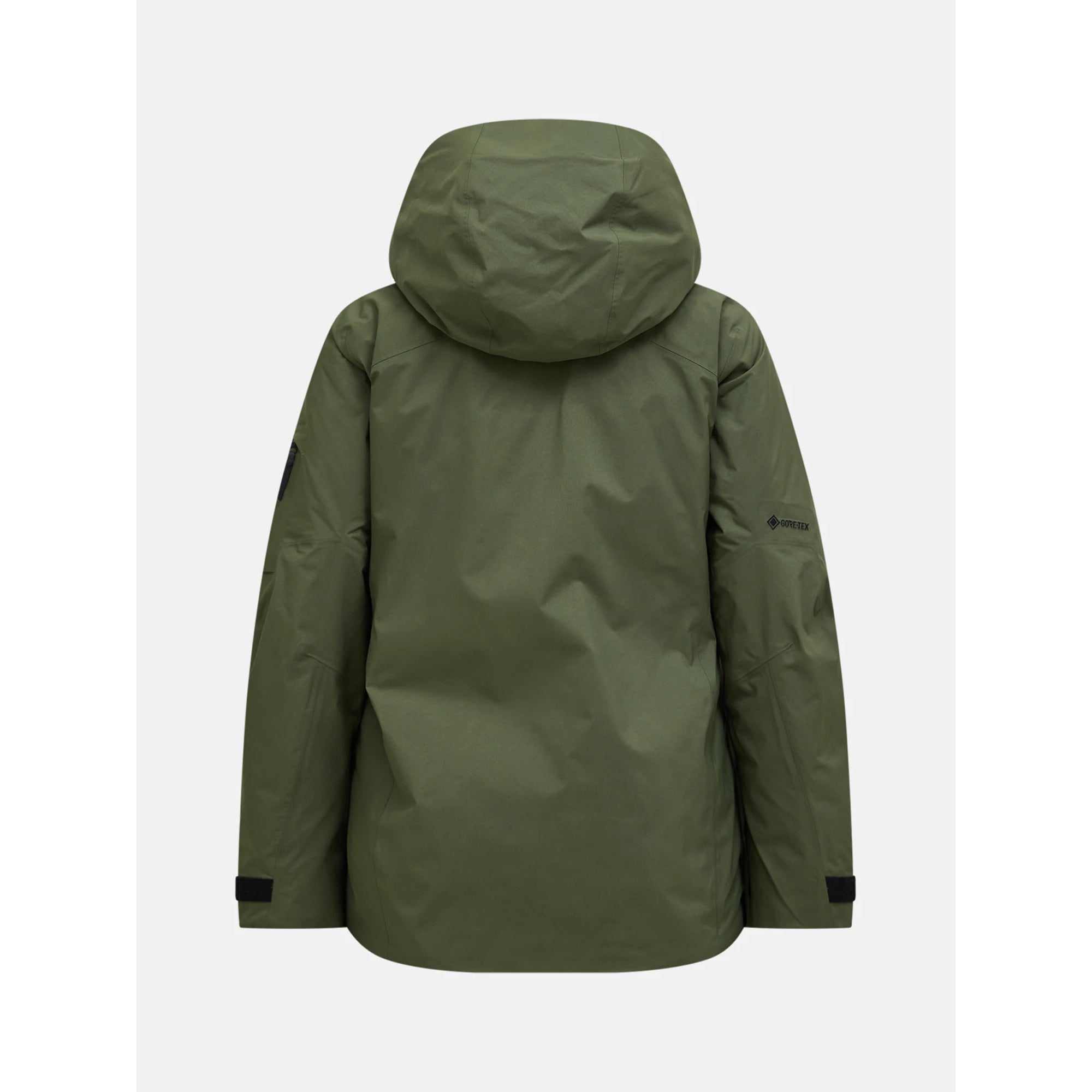 Adjustable drawcord at bottom hem, Adjustable sleeve hem with velcro straps, Articulated sleeves, Body - 60 gr/m2, Cohæsive™ cord hardware at hood, Elastic wrist gaiters with thumbhole, Exposed zippers are YKK AquaGuard®, Fixed Hood, Full front, 2-way YKK AquaGuard® zipper, Fully seam sealed, GORE-TEX 2L Insulated, Goggle wiper, Hanger loop inside neck, Hood - 40 gr/m2, Laminated brim, Made without intentionally added PFAS, P-logo rubber badge at sleeve, Peak Performance embroidery at chest, Pinneco Mantle™ insulation, RECCO® Rescue System reflector, RECCO® Technology, Radio pocket with antenna exit, Ski helmet compatible hood, Sleeves - 40 gr/m2, Soft fleece lined chin protection, Two-way (height and width) adjustable hood, Zippered chest pocket, Zippered hand pockets, Zippered inner pocket, Zippered ventilation under sleeves