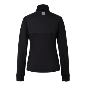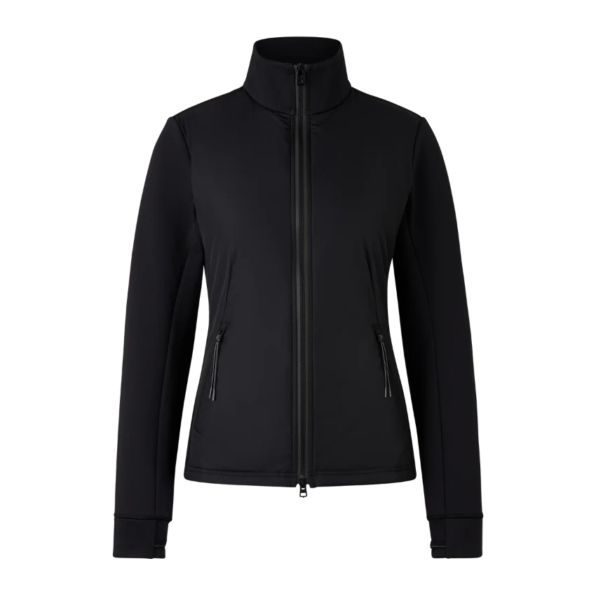 Mid-layer jacket in a regular fit in a hybrid design with nylon sections featuring stand-up collar, long sleeves, sleeve cuffs with overlock seam and thumb loop, two-way zip with B pendant and reflective stripe details, two side zip pockets, tonal overlock seams