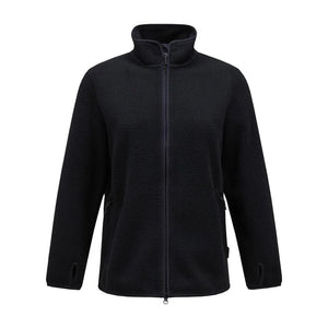 Binding along handpocket opening, Double layer collar, Elastic binding along collar, center front zipper, bottom hem and cuffs, Elastic binding at hem and cuffs, Elastic cuff with thumbhole, Full front with 2-way YKK Vislon® zipper, Made without intentionally added PFAS, Narrow flatlock covering seams, Peak Performance flag label, Soft pile with jersey back, Stand up collar, Zippered hand pockets