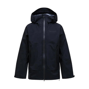 Adjustable drawcord at bottom hem, Adjustable sleeve hem with velcro straps, Articulated sleeves, Exposed zippers are YKK AquaGuard®, Fixed Hood, Full front, 2-way YKK AquaGuard® zipper, Fully seam sealed, GORE-TEX 3L C-KNIT™, Hanger loop inside neck, Hidden RFID pass pocket, Inner mesh pocket accessible through ventilation, Laminated brim, Leg pocket with flap, Made without intentionally added PFAS, P-logo rubber badge at sleeve, Packable into hood, Peak Performance embroidery at chest, Plastic wire at hood brim, RECCO® Rescue System reflector, RECCO® Technology, Ski helmet compatible hood, Soft fleece lined chin protection, Two-way (height and width) adjustable hood, Zippered bellow waist pocket, Zippered front facing ventilations, Zippered inner pocket