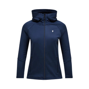 Full front with YKK coil zipper, Made without intentionally added PFAS, Midweight, 271 gsm flat fleece, soft brushed back that traps warm air. Dries quickly, P-logo print at chest, Peak Performance print on hood, Single layer hood, Soft fleece lined chin protection, Zippered hand pockets